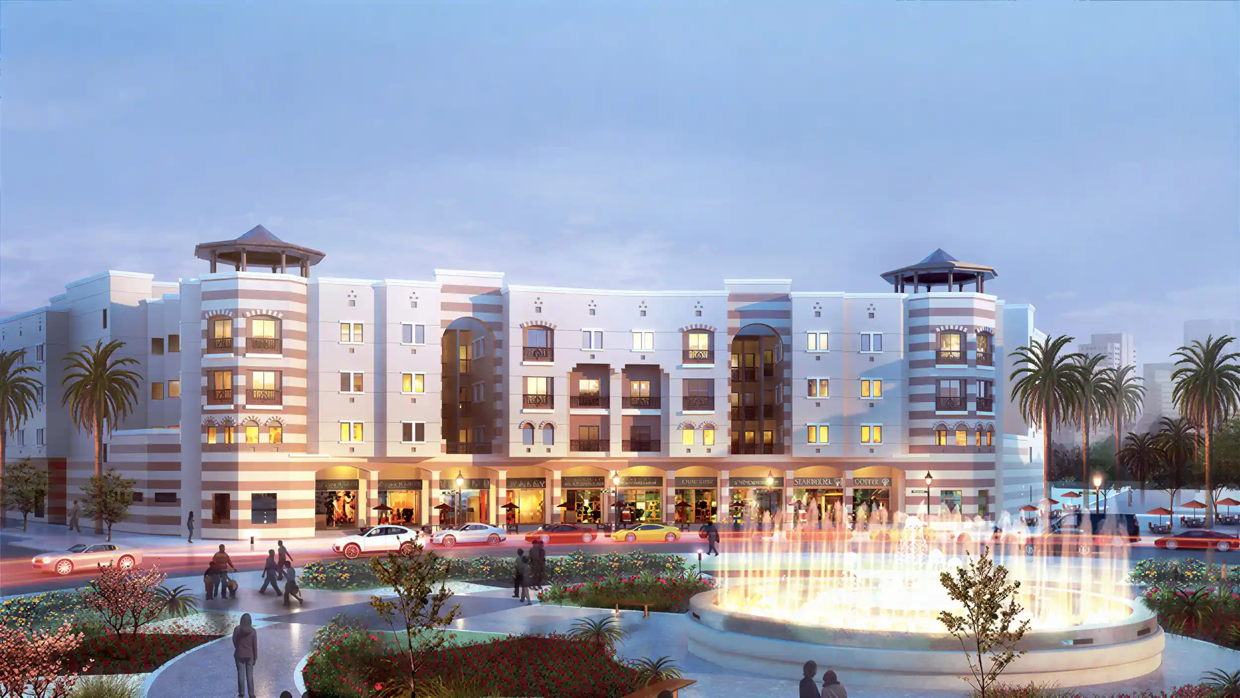 المميزات: حي حضري متكامل الخدمات، يشكل نقطة جذب لقطاعات الأعمال والسكان على حد سواء.